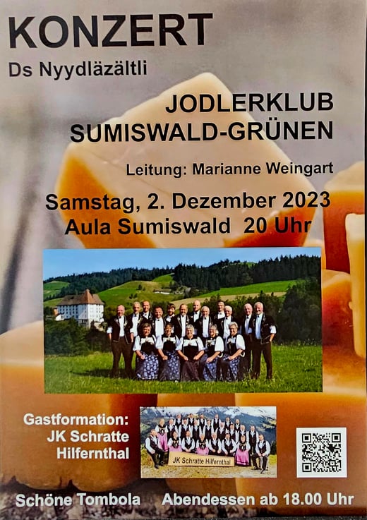 Das Konzert im 2023 wurde versüsst durch das Nyydläzältli. Unsere Gastformation war JK Schratte Hilfernthal. Einmal mehr gab es eine wunderschöne Tombola, organisiert vom Martin. Danke vielmal. Um die Bühnendekoration hat sich Rosette gekümmert. Es sah sehr schön aus. Für die Küche war Margreth zuständig. Die Sandwich waren einfach der Hammer. Wir haben die Gesellschaft und Bereicherung vom JK Schratte Hilfernthal sehr genossen. Hier ein paar Impressionen.